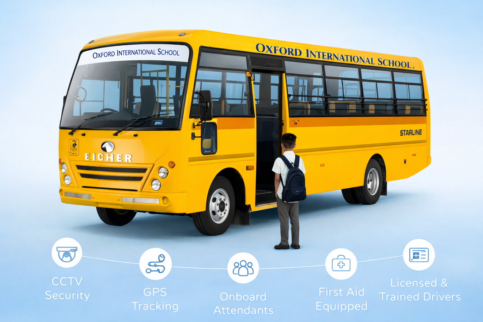 We prioritize your child's safety and comfort throughout their daily commute and are dedicated to providing reliable transportation. Our vehicles are modern and specifically designed for children's safety. All drivers are carefully selected and undergo safety training. We ensure on-time arrivals with a strict, optimized schedule to get students to school and back efficiently.