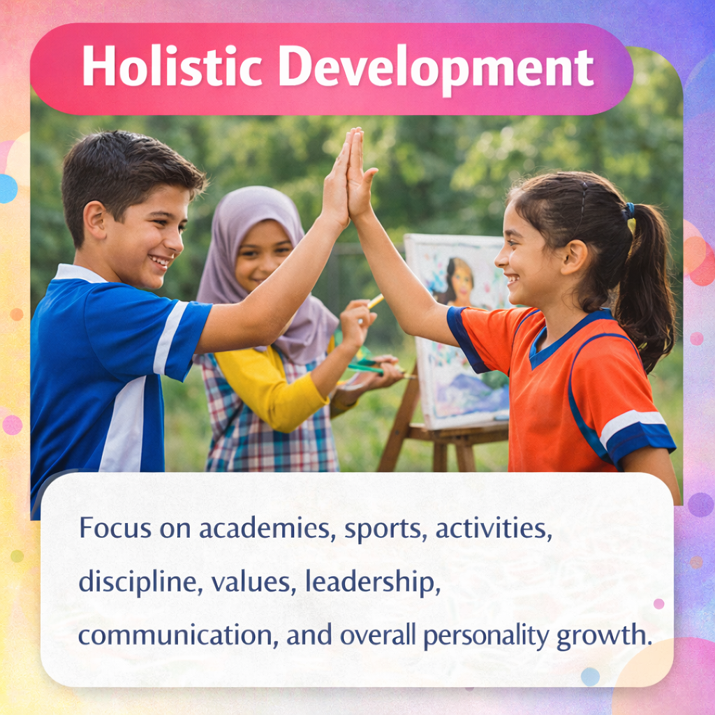 Sports, arts, leadership, discipline, communication, creativity, teamwork & overall personality shaping for a confident future-ready child.