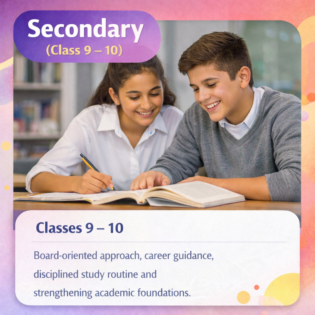 Board exam preparation, disciplined study pattern, structured guidance, academic strengthening & early career awareness.